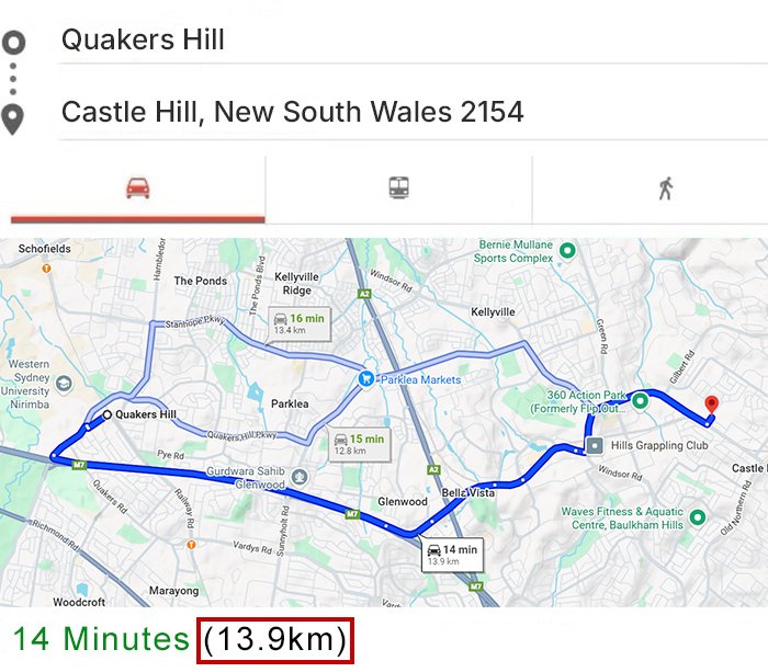 Enter Quakers Hill as your starting location on Google Map
